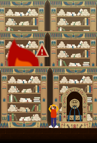 You have but one minute before the stones collapse and the fire claims everything. Run through the vast halls of the library, climb its towering shelves, and cast water upon the raging flames to save as many scrolls as fate will allow.